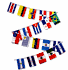 Each international flag streamer is made of a polyester material and consists of 20 different country flags. Each streamer measures 30' in length with each flag measuring 12"x 18". The following country flags are included on each streamer: Dominican Rep., Peru, Puerto Rico, Chile, Cuba, Venezuela, El Salvador, Panama, Colombia, Brazil, Costa Rica, Mexico, Guatemala, Uruguay, Honduras, Bolivia, Nicaragua, Ecuador, Argentina and Paraguay.