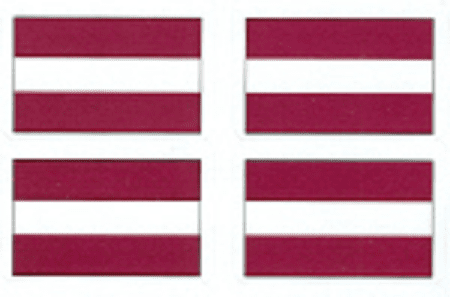 If you don’t need a roll of 250 - Latvia flag stickers are also offered in order units of 50 stickers per flag design. Each Latvian flag sticker measures 1" x 1 1/2" and is printed on heavy label paper stock.