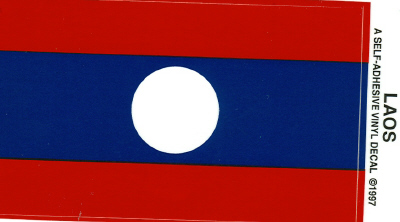 Special closeout sale. Buy 25 or more Laos vinyl waterproof flag decals and the price is only 40 cents each.