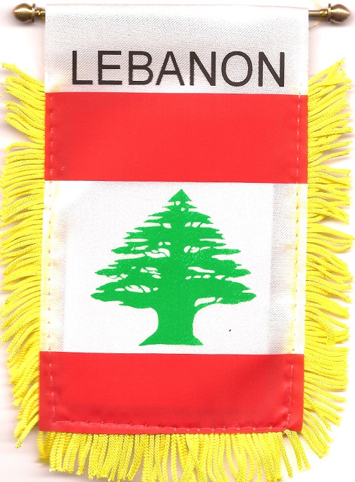 Lebanese car windshield, window or mirror mini measure 3 1/2 x 5 inches; and are great ways to show your heritage. Each flag has a gold fringe with a string for hanging over your car mirror, and a suction cup to attach the mini flag to your windshield or car window.