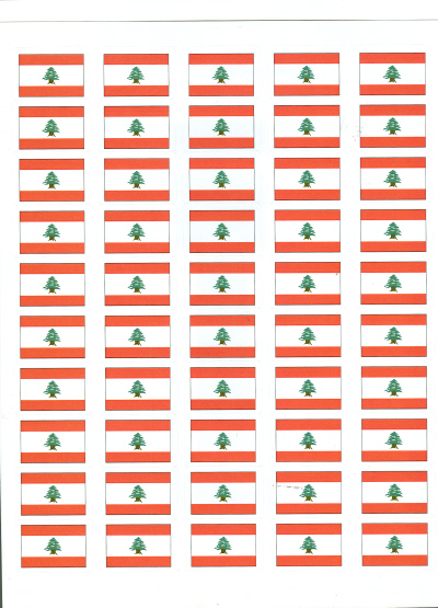 Lebanese flag stickers are offered in order units of 50 stickers per flag design. Each Lebanon flag sticker measures 1" x 1 1/2" and is printed on heavy label paper stock.