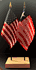 Elevate your workspace with our Liberia and American miniature flag desk set! These silk-like rayon flags,measuring 4x6 inch and are attached to a 10 inch black plastic staff and finished with a gold spear top. Perfect for office, classroom, or table decor. Each set comes with a 4 inch long white flag stand for added display options.