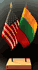 Elevate your workspace with our Lithuania and American miniature flag desk set! These silk-like rayon flags, measuring 4x6 inch and are attached to a 10 inch black plastic staff and finished with a gold spear top. Perfect for office, classroom, or table decor. Each set comes with a 4 inch long white flag stand for added display options.