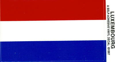 Special closeout sale. Buy 25 or more Luxembourg vinyl waterproof flag decals and the price is only 40 cents each.
