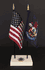 This high quality Maine and US Executive miniature flag desk set is perfect for office, classroom and table decorations. Flags are made of silk like rayon, measure 4"x6" and are attached to 10 inch black plastic staff with a gold spear top. All edges are hem stitched