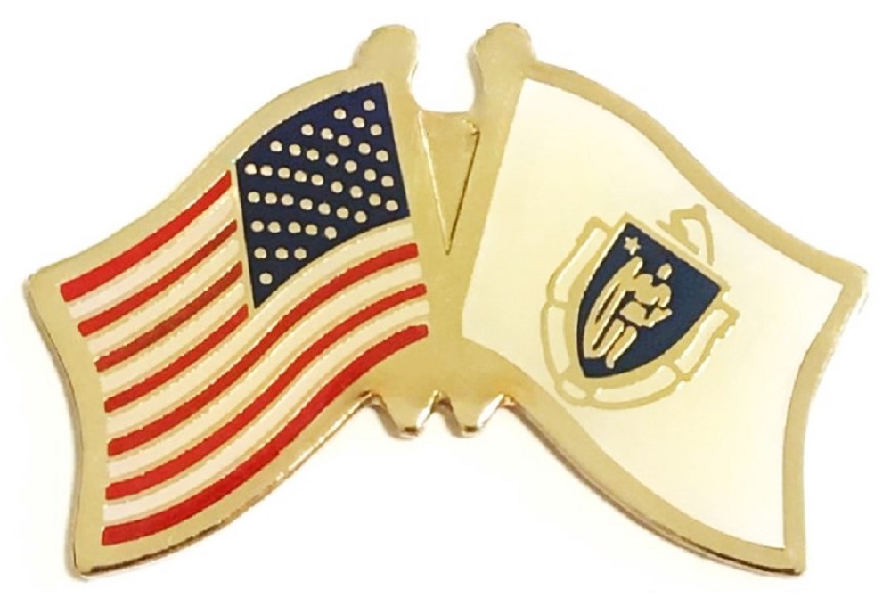 Each Massachusetts flag friendship lapel pin depicts the US flag on the left and the Massachusetts flag on the right. Each pin measures approximately 1" x 3/4" or 28mm x 18.3mm and is the same quality as the single flag lapel pins.