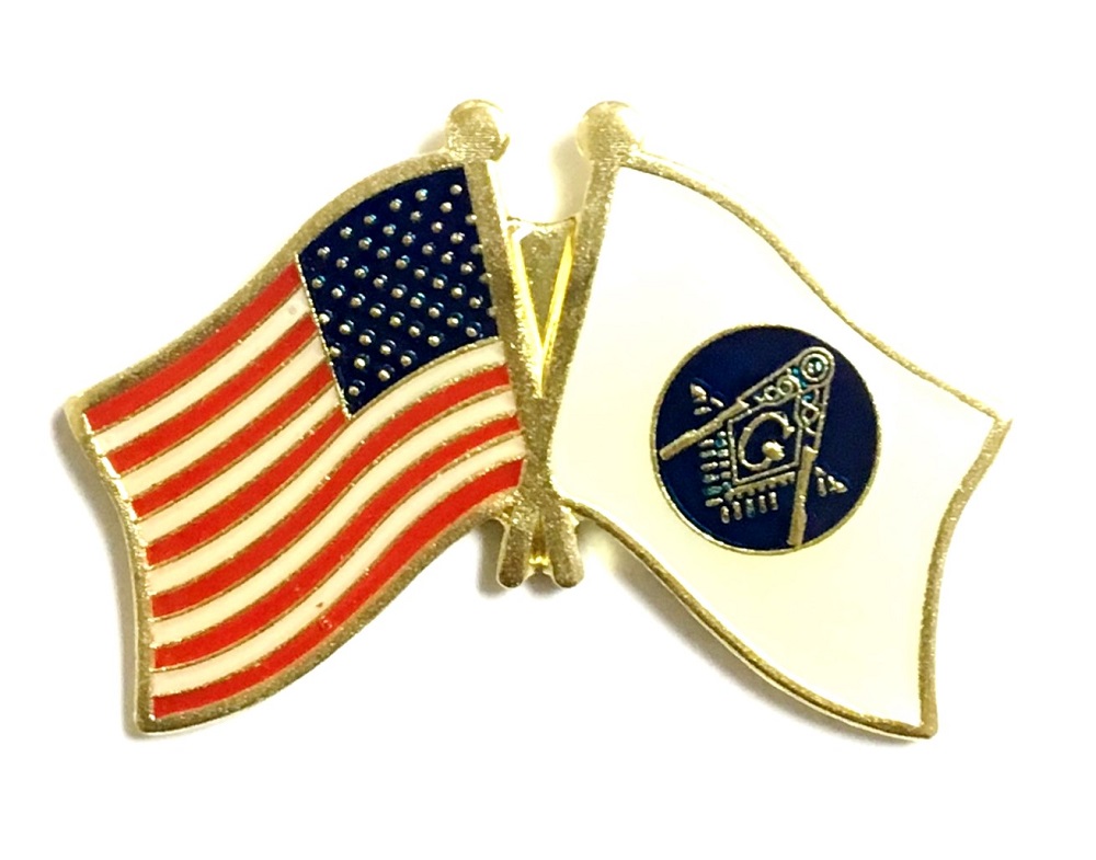 Each Masonic Freemasonary double flag lapel pins depicts one waving USA flag and one Masonic waving flag. Each Freemasonary friendship flag pin measures approximately 7/8" x 5/8" and has an all metal lacquered design with clutch pin.
