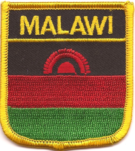Malawi flag shield patches are fully embroidered and measure 2.25″ x 2.5″. Each patch is trimmed in gold and can be ironed or sewn on.