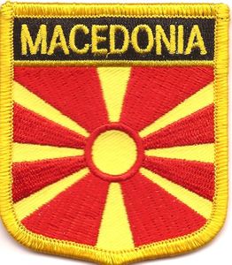 Macedonia flag shield patches are fully embroidered and measure 2.25″ x 2.5″. Each patch is trimmed in gold and can be ironed or sewn on.