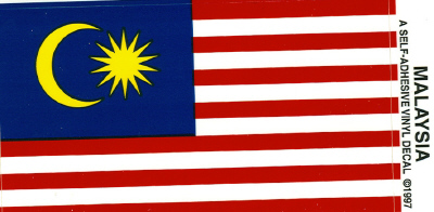 Malaysian vinyl flag decal sticker measures 2 3/8" x 4". Each top quality decal is self adhesive, waterproof and sticks to any