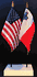 Elevate your workspace with our Malta and American miniature flag desk set! These silk-like rayon flags, measuring 4x6 inch and are attached to a 10 inch black plastic staff and finished with a gold spear top. Perfect for office, classroom, or table decor. Each set comes with a 4 inch long white flag stand for added display options.