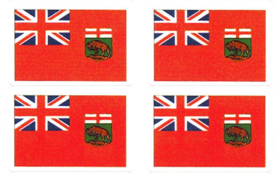 Manitoba flag stickers are now available 50 stickers per sheet. Each sticker measures 1" x 1 1/2" and is printed on heavy label paper stock.