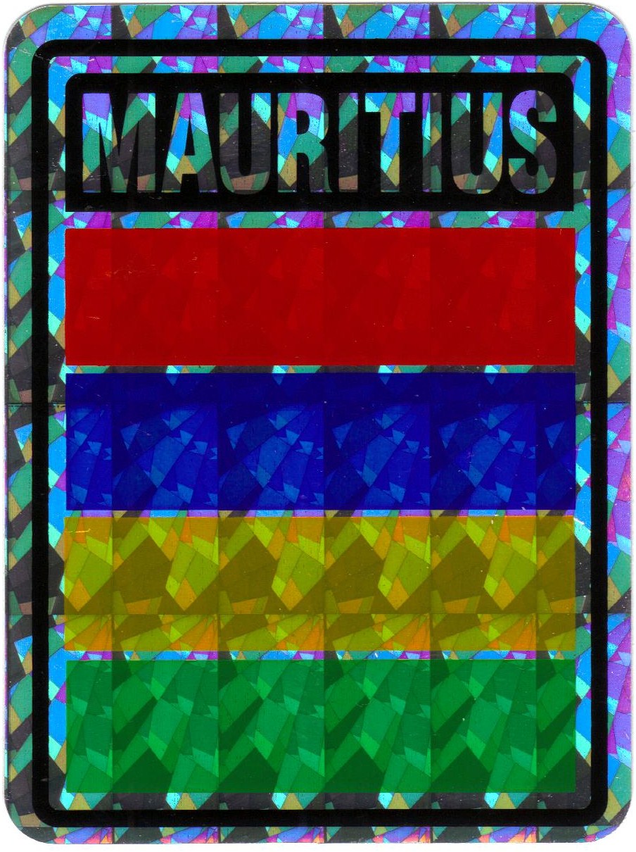 Mauritius prismatic reflective decal stickers are made of waterproof vinyl. Decals measure 3"x4" and can be used outdoors in all weather. Great for attaching to your car, truck or boat. Decorate your home or automobile and show your Mauritian pride.