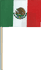 The most economical miniature stick flags for your large events. Mexico flags are made of non-fray cotton, measure 4"x6" and are attached to a 10" natural wood staff. Each order unit contains 24 flags. Quantity discounts are available.