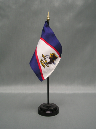 American Samoa 4x6 inch; stick flags are beautifully printed on silk-like material. Each flag is carefully hem-stitched on all 4 sides for longer lasting beauty. They are attached to a 10 inch; black plastic staff with a gold spear making these international flags perfect for desktop or tabletop displays.