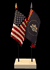 This high quality State and US miniature flag desk set is perfect for office, classroom and table decorations. Flags are made of silk-like rayon, measure 4"x6" and are attached to 10" black plastic staff with a gold spear top. All edges are hem stitched. Flag stand measures 4" long, 2.5" wide and stands .75" high.