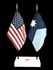 This high quality State and US Executive miniature flag desk set is perfect for office, classroom and table decorations. Flags are made of silk like rayon, measure 4"x6" and are attached to 10" black plastic staff with a gold spear top. All edges are hem stitched.