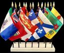 Canadian Province Flags are available individually or in a 14 flag set. Each set includes one 4"x 6" deluxe miniature flag of each of the 13 provinces or territories and one Canadian flag. Each set comes with a 14 hole white base to display your flag set.