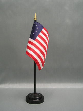 These miniature Cowpens 4"x6" stick flags are beautifully printed on silk-like material. Each flag is carefully hem-stitched on all 4 sides for longer lasting beauty. They are attached to a 3/16" x 10" black plastic staff with a gold spear making these international flags perfect for desktop or tabletop displays.