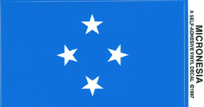 Special closeout sale. Buy 25 or more Micronesia vinyl waterproof flag decals and the price is only 40 cents each.