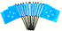 Each Micronesian mini flag measures 4″x6″ and is attached with a pole hem to a 10″ black plastic staff with a black or gold spear top.