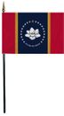 This 4"x6" miniature New Mississippi State Flag is made of polyester and attached to a 10" plastic staff. Miniature stick flags are the perfect size for table or desk decorations, parades, school projects and special event displays. Quantity discounts are available when you buy 12 or more.