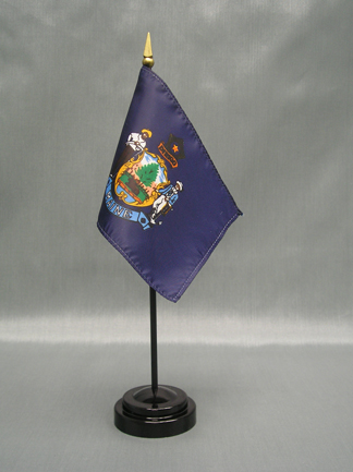 This 4"x6" miniature Maine State Flag is made of polyester and attached to a 10" plastic staff. Miniature stick flags are the perfect size for table or desk decorations, parades, school projects and special event displays. Quantity discounts are available when you buy 12 or more.