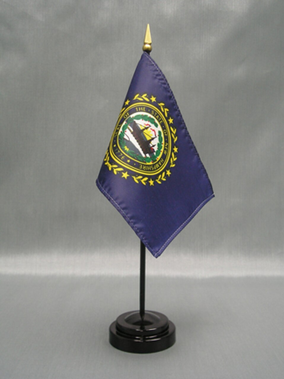 This 4"x6" miniature New Hampshire State Flag is made of polyester and attached to a 10" plastic staff. Miniature stick flags are the perfect size for table or desk decorations, parades, school projects and special event displays. Quantity discounts are available when you buy 12 or more.