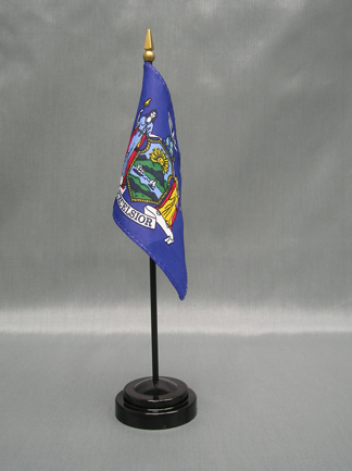 This 4"x6" miniature New York State Flag is made of polyester and attached to a 10" plastic staff. Miniature stick flags are the perfect size for table or desk decorations, parades, school projects and special event displays. Quantity discounts are available when you buy 12 or more.