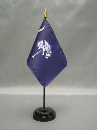 This 4"x6" miniature South Carolina State Flag is made of polyester and attached to a 10" plastic staff. Miniature stick flags are the perfect size for table or desk decorations, parades, school projects and special event displays. Quantity discounts are available when you buy 12 or more.