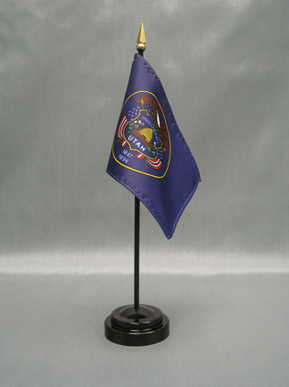 This 4"x6" miniature Utah State Flag is made of polyester and attached to a 10" plastic staff. Miniature stick flags are the perfect size for table or desk decorations, parades, school projects and special event displays. Quantity discounts are available when you buy 12 or more.