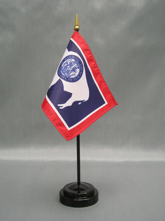 This 4"x6" miniature Wyoming State Flag is made of polyester and attached to a 10" plastic staff. Miniature stick flags are the perfect size for table or desk decorations, parades, school projects and special event displays. Quantity discounts are available when you buy 12 or more.