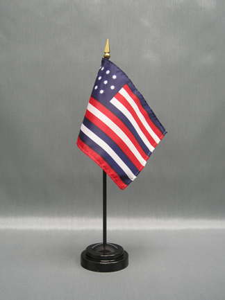 These miniature Serapis 4"x6" stick flags are beautifully printed on silk-like material. Each flag is carefully hem-stitched on all 4 sides for longer lasting beauty. They are attached to a 3/16" x 10" black plastic staff with a gold spear making these international flags perfect for desktop or tabletop displays.