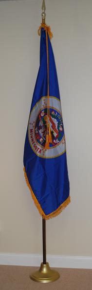 Each US state indoor flag set includes the 3'x5' gold fringed nylon state flag with lined pole heading,