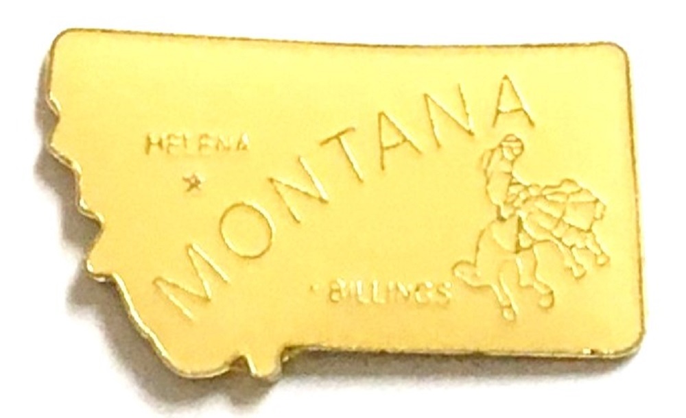 Montana map lapel pins are shaped like the map design of the State. Each Montana map pin measures approximately 5/8" x 5/8" and has an all metal lacquered design with clutch pin