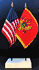 Elevate your workspace with our Montenegro and American miniature flag desk set! These silk-like rayon flags, measuring 4"x6", are attached to a 10" black plastic staff and finished with a gold spear top. Perfect for office, classroom, or table decor. Each set comes with a 4" long white flag stand for added display options.