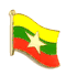 Myanmar (Burma) flag pin measures approximately 1 inch; x 3/4 inch; or 24 mm x 16 mm and has an all metal lacquered design with clutch pin.