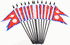 Each flag measures 4″x6″ and is attached to a 10″ black plastic staff with black or gold spear top. Excellent low price alternative for special events, parades, or table decorations.