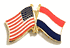 Each Netherlands flag friendship lapel pin depicts the US flag on the left along with the Netherlands flag on the right. Each pin measures approximately 1" x 3/4" or 28 mm x 18.3 mm and is the same quality as the single flag lapel pins.
