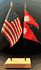 Elevate your workspace with our Nepal and American miniature flag desk set! These silk-like rayon flags, measuring 4"x6", are attached to a 10" black plastic staff and finished with a gold spear top. Perfect for office, classroom, or table decor. Each set comes with a 4" long white flag stand for added display options.