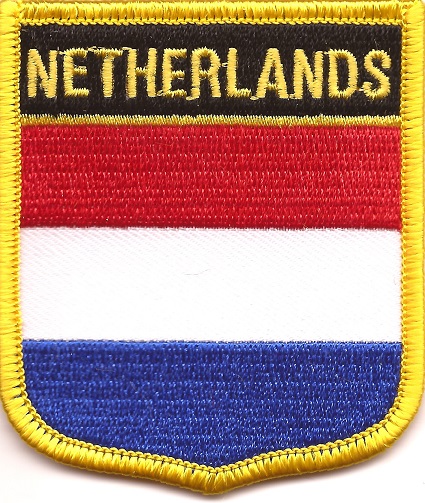 Netherlands flag shield patches are fully embroidered and measure 2.25″ x 2.5″. Each patch is trimmed in gold and can be ironed or sewn on.