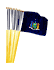 These popular 12"x18" New York miniature stick flags are perfect for parades, special events, classroom decorations or souvenirs and are sold in a pack of 12. They are made of a polyester material which is stitched on all sides and attached to a 30" wood