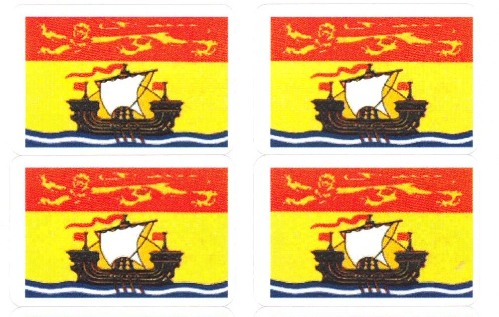 New Brunswick flag stickers are now available 50 stickers per sheet. Each sticker measures 1" x 1 1/2" and is printed on heavy label paper stock.