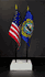 This high quality State and US miniature flag desk set is perfect for office, classroom and table decorations. Flags are made of silk-like rayon, measure 4"x6" and are attached to 10" black plastic staff with a gold spear top. All edges are hem stitched. Flag stand measures 4" long, 2.5" wide and stands .75" high.