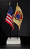 This high quality State and US miniature flag desk set is perfect for office, classroom and table decorations. Flags are made of silk-like rayon, measure 4"x6" and are attached to 10" black plastic staff with a gold spear top. All edges are hem stitched. Flag stand measures 4" long, 2.5" wide and stands .75" high.