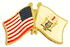 Each New Jersey flag friendship lapel pin depicts the US flag on the left and the New Jersey flag on the right. Each pin measures approximately 1" x 3/4" or 28mm x 18.3mm and is the same quality as the single flag lapel pins.