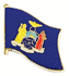 New York single flag lapel pins depict one waving flag. Each New York flag pin measures approximately 1" x 3/4" or 24 mm x 16 mm and has an all metal lacquered design with clutch pin.