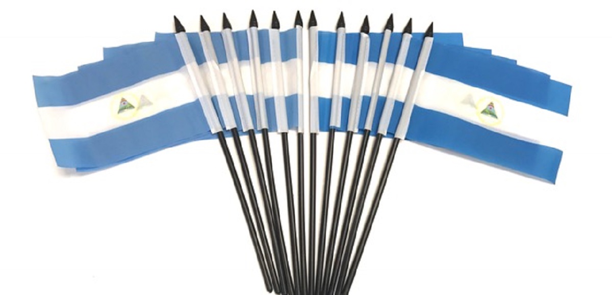 These polyester miniature Nicaragua flags are sold by the dozen only.