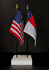 This high quality State and US miniature flag desk set is perfect for office, classroom and table decorations. Flags are made of silk-like rayon, measure 4"x6" and are attached to 10" black plastic staff with a gold spear top. All edges are hem stitched. Flag stand measures 4" long, 2.5" wide and stands .75" high.