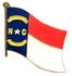 North Carolina single flag lapel pins depict one waving flag. Each North Carolina flag pin measures approximately 1" x 3/4" or 24 mm x 16 mm and has an all metal lacquered design with clutch pin.